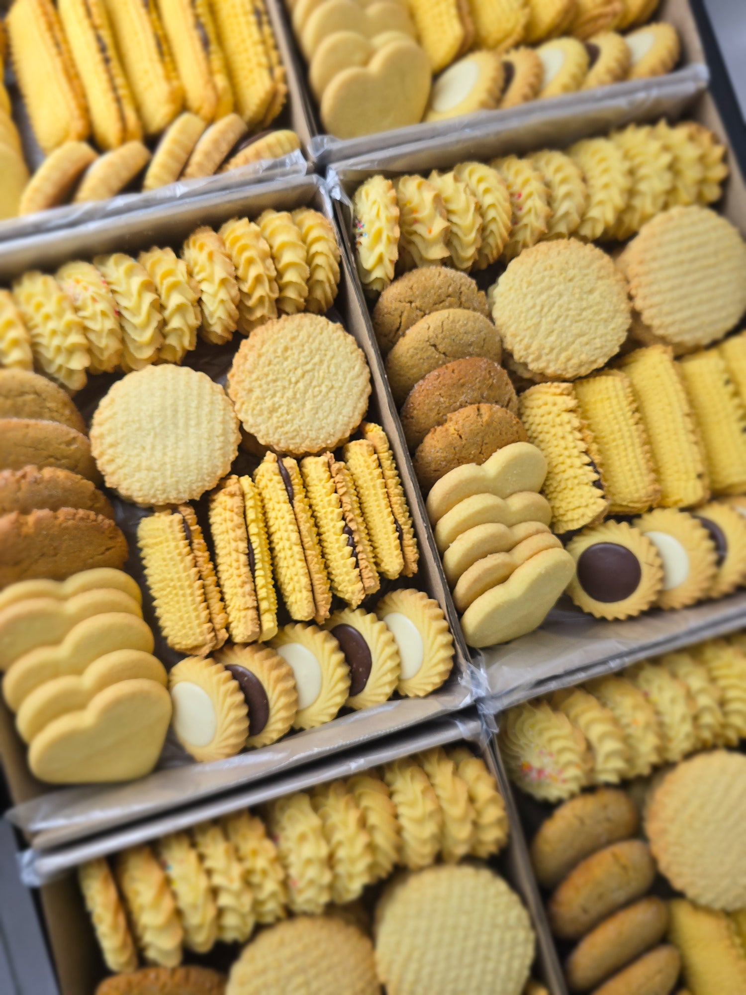 Get your bulk cookie fix with our delicious selections, sold in 1kg boxes. To ensure you have plenty to go around, we require a minimum order of 5kg (which means 5 x 1kg boxes).